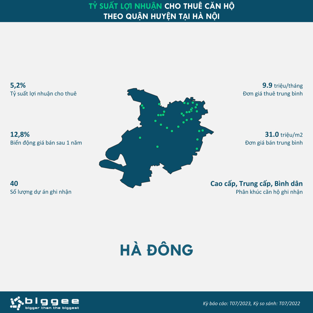 Tỷ suất lợi nhuận cao nhất thường thấy ở những quận ngoại thành như Hà Đông và Nam Từ Liêm. Đây là những khu vực có mức giá bán hợp lý hơn mà vẫn thu hút nhiều người thuê.